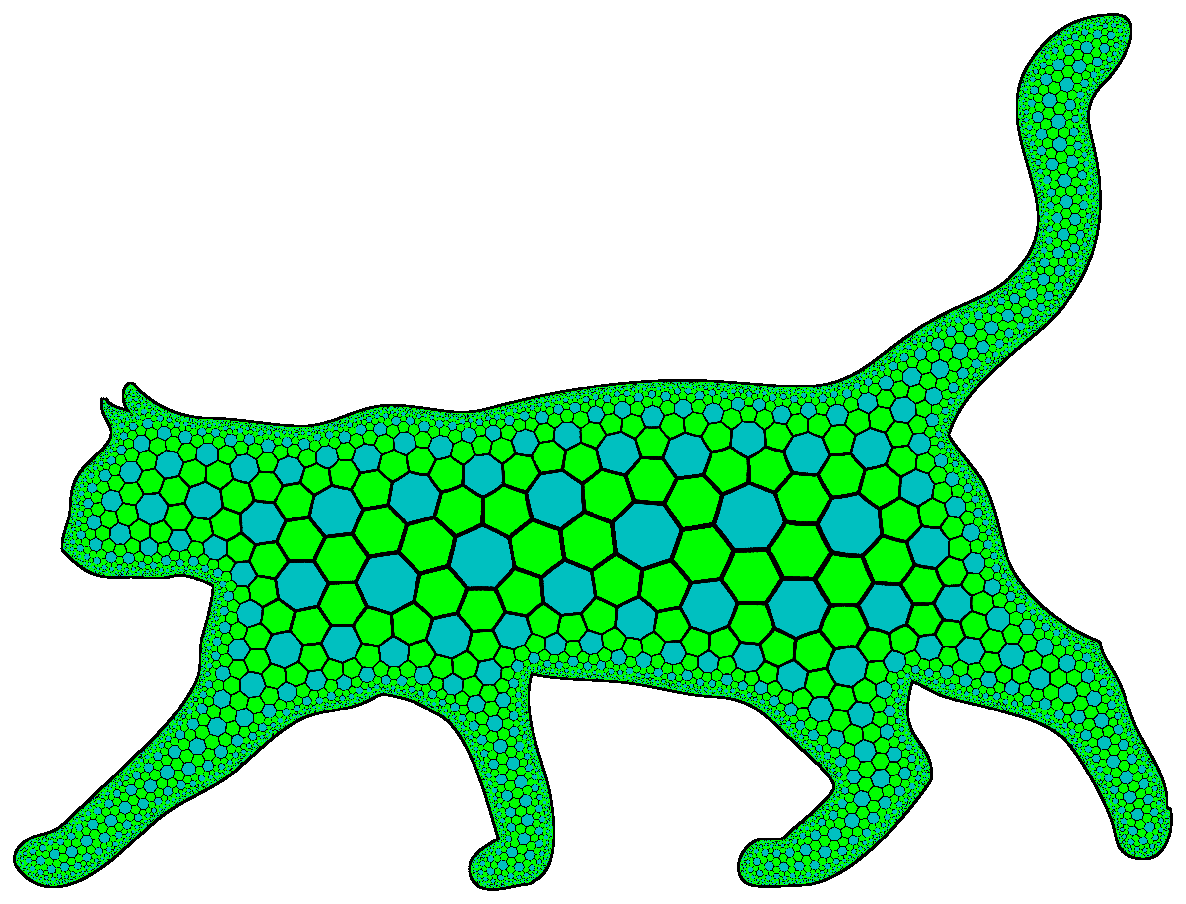 See http://roguetemple.com/z/newconformist/ for sample image files (shapes and tilings). Tilings come from HyperRogue, the Elegant Cat Silhouette by GDJ comes from https://openclipart.org/detail/258901/elegant-cat-silhouette .