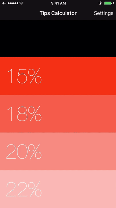 - Making sure the keyboard is always visible and the bill amount is always the first responder. This way the user doesn't have to tap anywhere to use this app. Just launch the app and start typing.